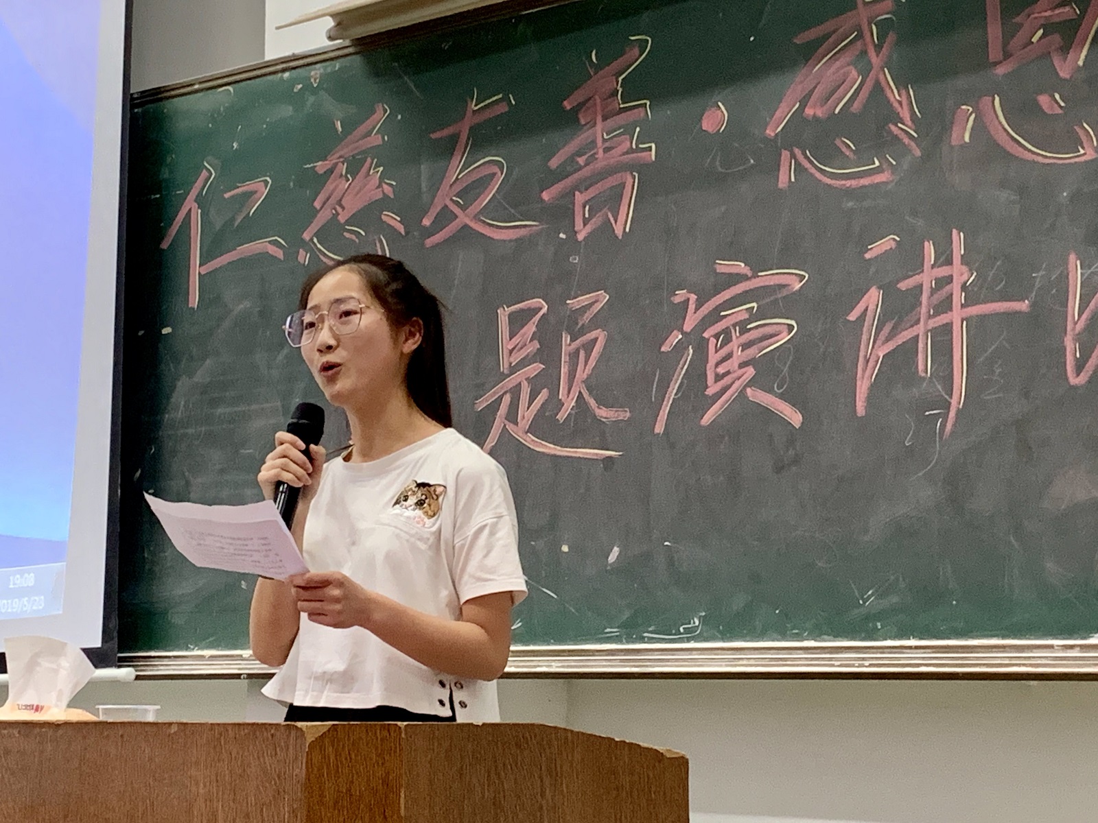 在主持人干事廖心意简单介绍比赛流程以后,本次演讲比赛正式开始。参赛选手在简单的自我介绍后,开始了正式的演讲。选手们以分享小故事、讲述亲身经历、播放PPT等多种多样的演讲形式向评委及观众讲述着自己对于主题的见解。在他们的精彩演讲中我们不难发现,他们对于仁慈友善有着自己独到的体会,而在生活中他们都是对于任何事都心存感恩。这种积极向上的生活态度也打动了在座的观众,赢得了滔滔不绝的掌声。在评委们讨论后,刘芹老师为优秀选手颁发了证书,并与获奖同学进行了合影。至此,本次演讲比赛正式结束。