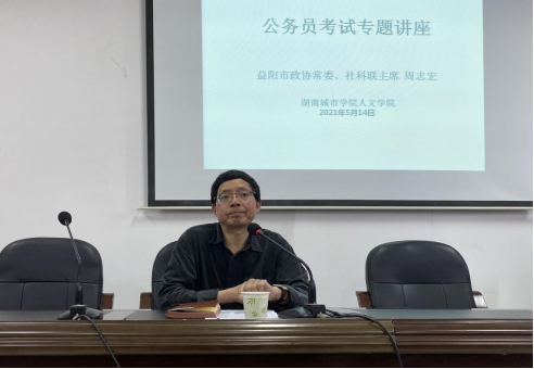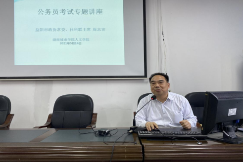 为了更好地开展党史学习教育,促进“我为师生办实事”落地见效,针对大学生在“考公”中遇到的问题和存在的困惑, 5月14日下午,必赢线路检测3003no1/大学英语教学部特邀请益阳市政协常委、市社科联主席周志宏做做公务员考试专题讲座。讲座由必赢线路检测3003no1党委书记黄晔主持。