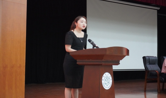 大会在嘹亮的国歌生中拉开帷幕,全体师生起立,共同唱响中华人民共和国国歌,表达我院师生的爱国之情。党委书记何冬林致对新生的到来表示了热烈的欢迎,希望各位新生能够秉承着学校品学兼修,知行统一的校训,努力学习,敬业修身,为学校和学院增光添彩。大学英语教学部主任、副院长周瑞英简要介绍了学校、学院及各专业的基本状况。教师代表符俊老师作了发言。她表达了对新生们的殷切期待,希望大家能够再接再厉,砥砺前行。随后,老生代表2005502班赵微同学、新生代表2105601班唐佳同学分别作了发言。