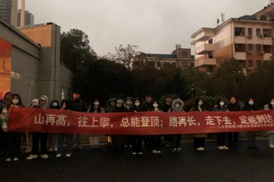 (大家齐举横幅迎接考研学子)