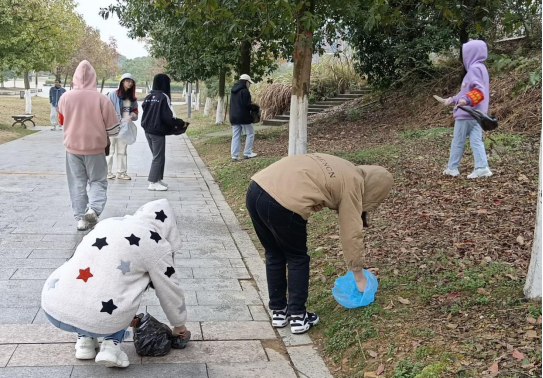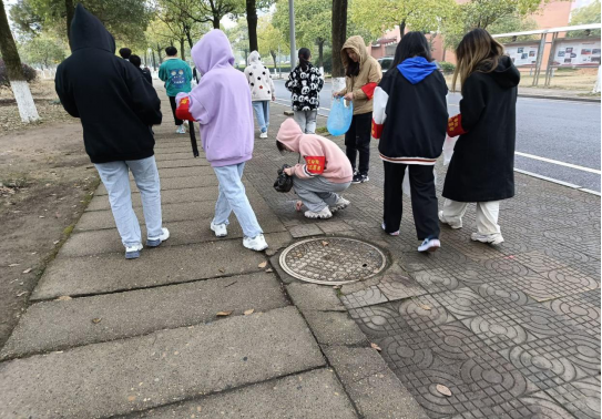 志愿者们分为两组,从学校北门出发,环校园一周捡拾沿途的垃圾。虽然在环卫工人们的辛勤劳动下,校园整体卫生情况不错,但是仍有个别同学的保护环境意识不强,将烟头、塑料包装袋等垃圾随手丢在路边。志愿者们一次次弯腰,用自己的行动带动身边的人,让伸伸手、弯弯腰成为一种习惯,让保护环境成为一种责任。