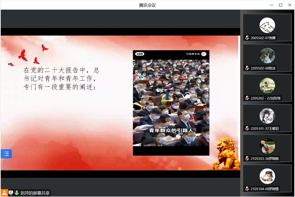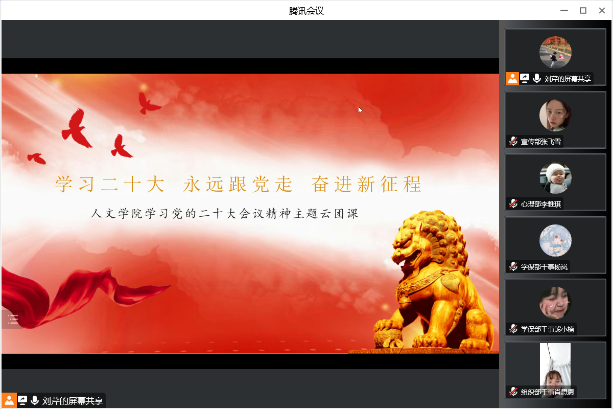 (必赢线路检测3003no1通讯员蒋凯玲)为深入学习贯彻习近平新时代中国特色社会主义思想和习近平总书记在党的二十大报告中关于青年工作的重要论述,团结引领广大团员青年永远跟党走、奋进新征程,我院团委组织开展“喜迎二十大、永远跟党走、奋进新征程”主题云团课。本次团课由我院团委书记刘芹老师主讲,学院120余名团员代表参与了此次学习。