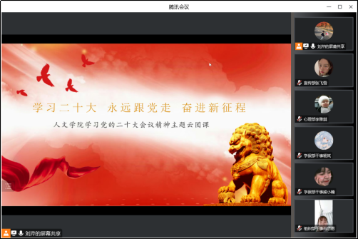 (必赢线路检测3003no1通讯员蒋凯玲)为深入学习贯彻习近平新时代中国特色社会主义思想和习近平总书记在党的二十大报告中关于青年工作的重要论述,团结引领广大团员青年永远跟党走、奋进新征程,我院团委组织开展“喜迎二十大、永远跟党走、奋进新征程”主题云团课。本次团课由我院团委书记刘芹主讲,学院120余名团员代表参与了此次学习。