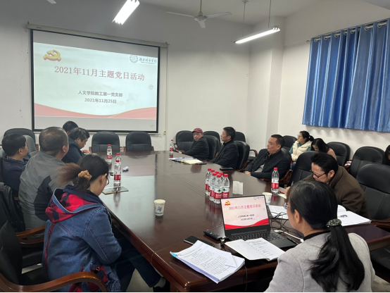 2021年11月25日下午,必赢线路检测3003no1全体教职工在管理楼520进行政治理论学习,全体党员上党课。之后,教工第一党支部在管理楼509开展主题党日活动。本次学习活动由支部书记彭小球主持。