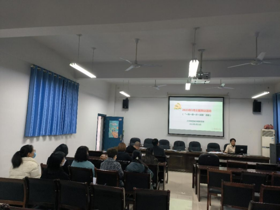 3月23日下午,支部书记臧永红同志主持在管理楼520开展大学英语教学部党支部3月份主题党日活动。