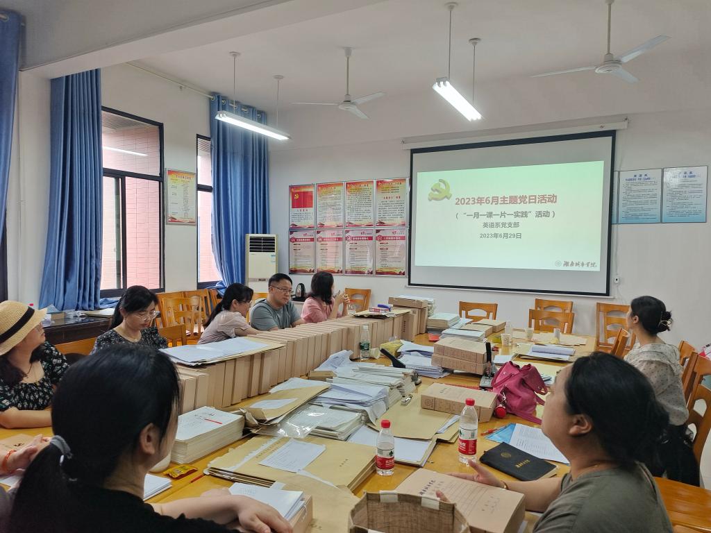6月29日,英语系党支部在管理楼508开展六月份主题党日活动。