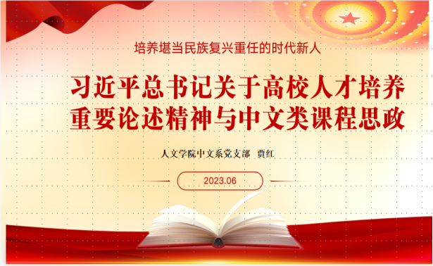 6月8日下午,中文系党支部在管理楼506开展了支部书记讲党课活动。支部书记贾红结合工作实际,给支部党员及中文系教师讲授了题为“习近平总书记关于高校人才培养重要论述精神与中文类课程思政”的专题党课。