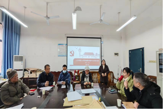 第二项议程,工作汇报。贾红同志传达了上级重要会议精神,代表中文系党支部委员会向支部全体党员详细报告了2023年度支部的主要工作。