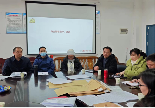 为严肃党内政治生活,强化党员党性意识,提升党组织战斗堡垒作用,2024年1月25日下午,中文系党支部在管理楼506举行了本年度第一次党员大会。本次会议共有三项议程:一、专题学习教育;二、支部书记汇报2023年度工作报告;三、民主评议党员。中文党支部书记贾红主持,学校党委委员雷存喜、学院党委书记彭海华以普通党员身份参加。