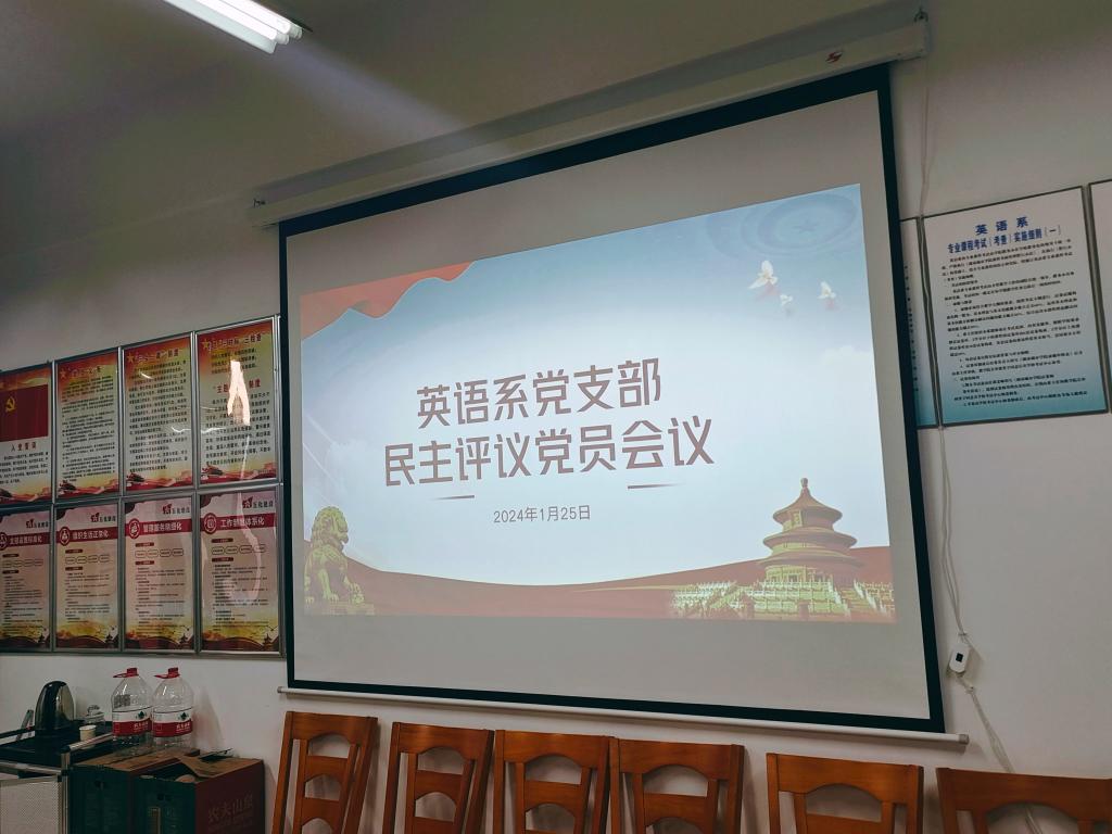 为进一步巩固拓展主题教育成果,坚持不懈用习近平新时代中国特色社会主义思想凝心铸魂。1月25日下午,英语系党支部在管理楼508开展英语系组织生活会暨民主评议党员大会,会议由支部书记蔡利妮主持,学院党委副书记刘淑莉列席会议。