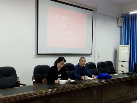 首先,杨英明老师结合自身经历全面介绍了中国七十年来艰辛的发展史。随后,杨英明老师从中国七十年来的科技发展入手,概括了中国在科技方面的进步。最后,杨英明老师提醒同学们提高党史学习的重视度,深刻认识党史教育的意义,并且坚定跟党走的决心。