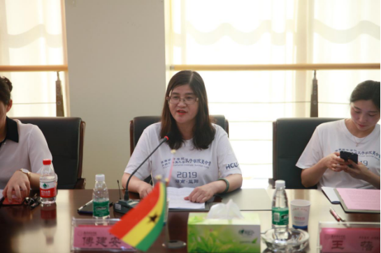会上,加纳营员代表发言,表达了对国家汉办和湖南城市学院的衷心感谢,谈了来到中国参观广州和乘坐中国高铁的感想,并对未来二十天的夏令营生活表示期待。孔子学院中方院长胡亮才发言表示,感谢学校对孔子学院工作的关心支持,表示一定严格要求参加夏令营的全体营员,认真做好组织工作。