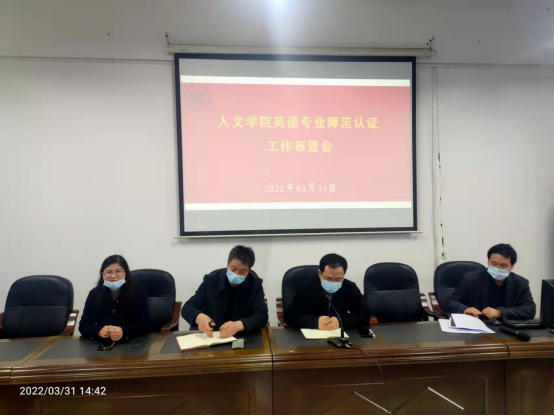 何冬林书记首先传达了学校有关师范类专业认证相关会议精神,并作了动员,强调了本次英语专业师范认证工作的必要性;傅建安院长指出要清楚认识到师范认证工作的重要性和紧迫性,并对此次师范认证工作寄予了厚望;大学英语教学部主任周瑞英教授要求全员参与,严格按时间节点完成相关工作任务;刘祥友副院长就本次师范认证工作进行了案例分析和相关文件的详细解读;英语系主任夏望秋老师布置了各项具体工作任务。