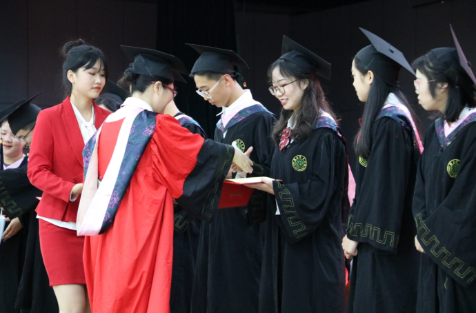 随后,傅建安院长为18名校友联络员颁发聘书,九位导师为360余名毕业生代表拨转流苏,颁发学位证、授予学位。