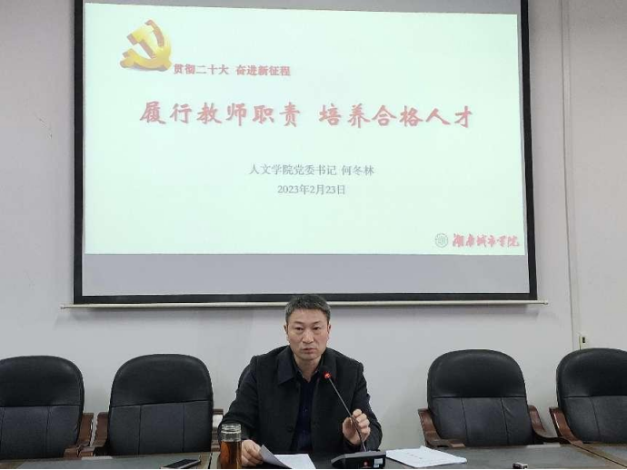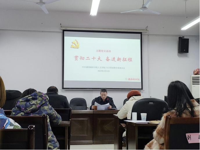 2023年2月23日下午2点,学院中文系党支部、英语系党支部、大学英语教学部党支部、新闻传播系党支部、学生第一党支部、学生第二党支部、学生第三党支部在管理楼520会议室联合举行2月份主题党日活动,院党委书记何冬林为全体师生党员主讲了新学期第一堂党课。