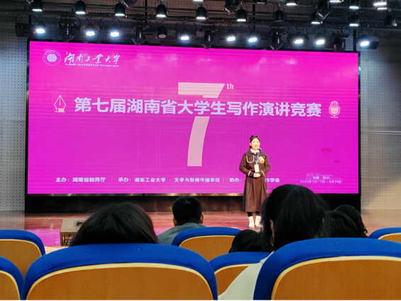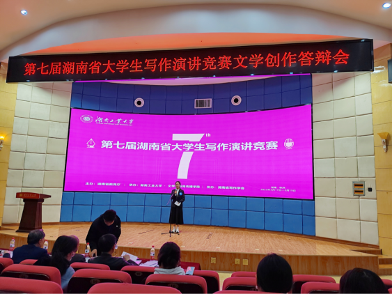 2023年3月17至19日,由湖南省教育厅主办第七届湖南省大学生写作演讲竞赛在株洲湖南工业大学举行。大赛分文学评论组、文学创作组、演讲组三个赛道,初赛和复赛由各学校组织进行,我校遴选出9名选手参加决赛。决赛共有32所高校的288名选手参加,参赛对象均为湖南省各普通高校中国语言文学专业全日制在校本科学生。