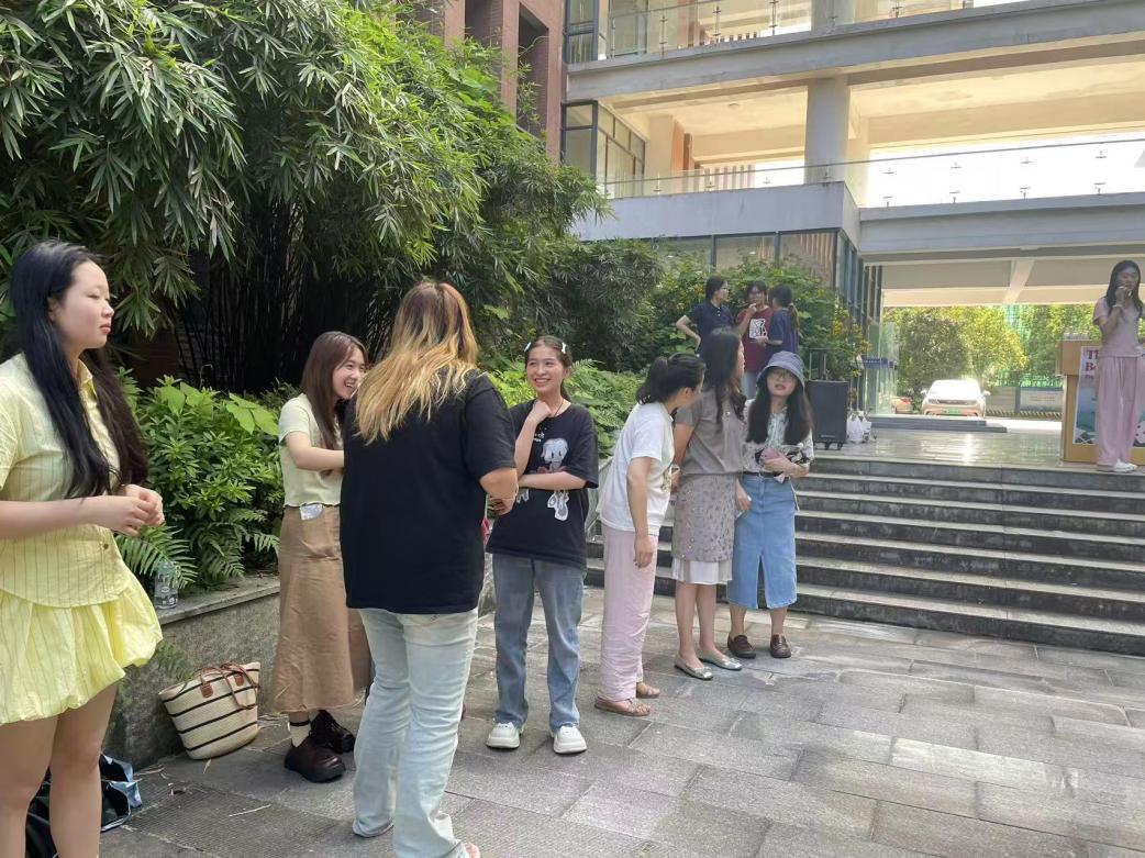 活动现场,巧妙设计的趣味游戏精彩纷呈。经典游戏“老狼几点了”被赋予端午新内涵,当“老狼”用英语喊出时间,同学们需快速反应并回答相应的端午习俗,在奔跑嬉戏间强化英语表达;“你划我猜”环节中,一方用生动的肢体语言与英语描述龙舟、香囊、艾草等端午元素,另一方则绞尽脑汁猜测,现场笑声不断,默契在英语交流中逐渐升温;最具创意的“寻粽蜜语”游戏中,写有端午知识英语小问答的卡片藏在管理楼后花园各处,同学们如寻宝般仔细搜寻,找到后用英语作答,在探索中加深对端午文化的理解。