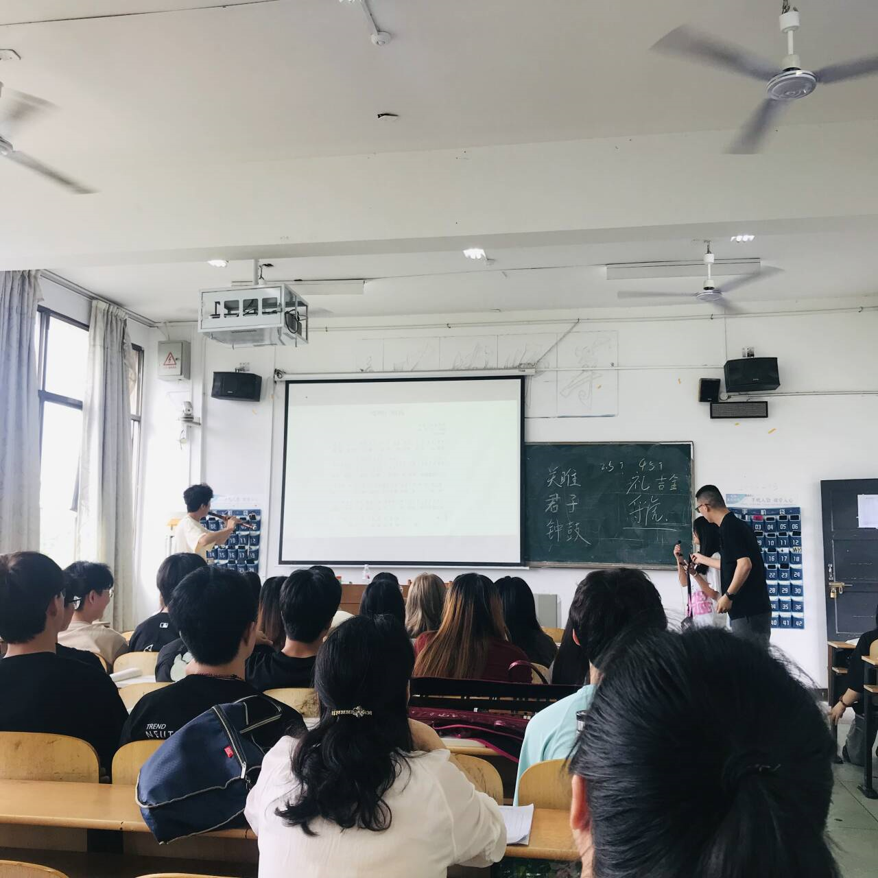 为了推进本科教育教学审核评估自评自建,提升教育教学质量,中文系继续开展青年教师公开课活动。5月27日上午,中文教研室乔鹏老师为音乐表演专业的学生带来了一堂别开生面的大学语文课,教学内容为《关雎》。
