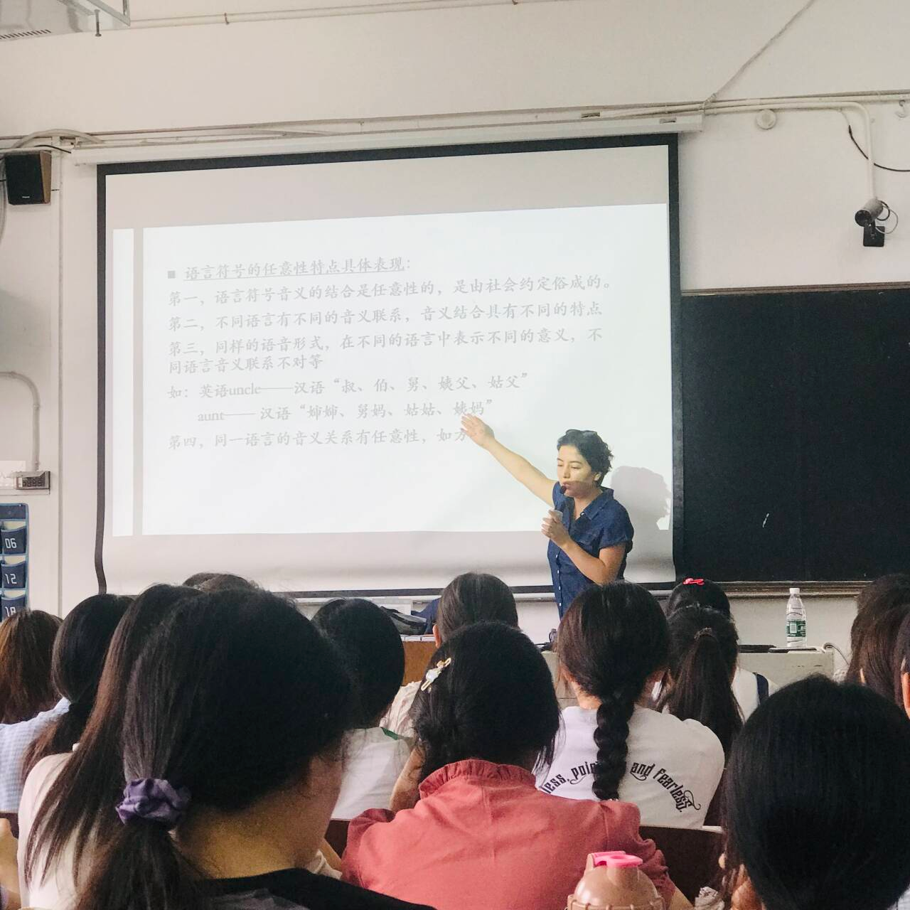木克然老师花费较多时间回顾上节课内容,复习语言符号的任意性和线条性。接着导入本节课,介绍语言符号的系统性,包含系统、语言系统、语言系统的特点。讲述语言系统的层级体系、组合关系和聚合关系。