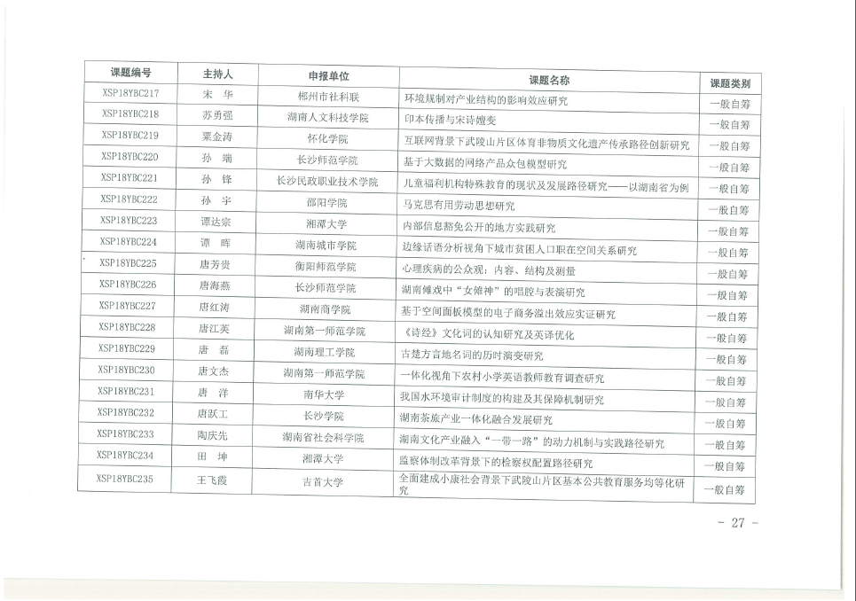 关于下达2018年度湖南省社会科学评审委员会课题的通知(王泉、谭晖)