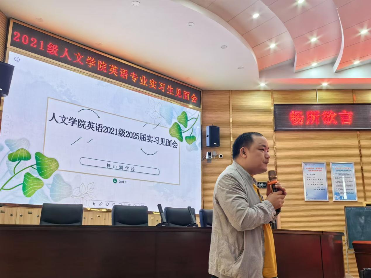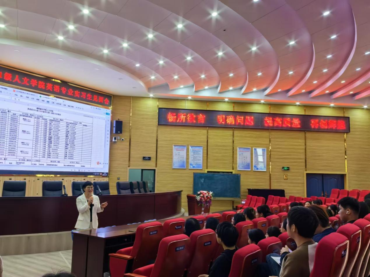 随后,英语系主任伍敬芳对梓山湖学校给予实习老师们的支持与帮助表示感谢,并就实习期间的具体安排与要求进行了说明。伍主任希望大家珍惜这次难得的实习机会,积极融入学校的教学环境,勇于挑战自我,不断追求卓越。