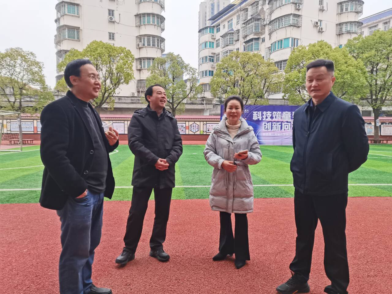 南县第三完全小学彭海华一行与南县教育工委委员、总督学刘洪、南县第三完全小学校长甘灿等看望走访实习生,并组织在南县各校实习的学生座谈,与实习单位进行了深入交流。