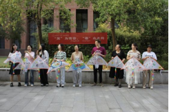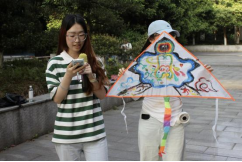 接下来的“我们的纸鸢”制作主题活动更是将现场气氛推至高潮。参加活动的师生们亲自动手设计绘画独属于自己的风筝,于规定时间内完成设计,然后进行展示并用英语介绍设计理念或内涵。春日阳光下,欢声笑语中,“我爱中国”的字样、传统祥云图案以及各种有趣的设计跃然于纸上。最后大家举着风筝放飞空中,“纸鸢”乘风而起,情谊随风而至。