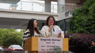 4月24日下午,2305104班和2205103班的同学在指导老师陈茜的带领下,在管理楼后坪联合举办了第四期的英语角活动。活动以“工匠精神”为主题,英语系卢艳阳老师、符俊老师、王蓓老师、邱丽华老师、席蕊芳老师和外教Rachel共同参加,此次活动不仅锻炼了同学们的英语口语能力,也让大家更好地体会了“工匠精神”的意义。