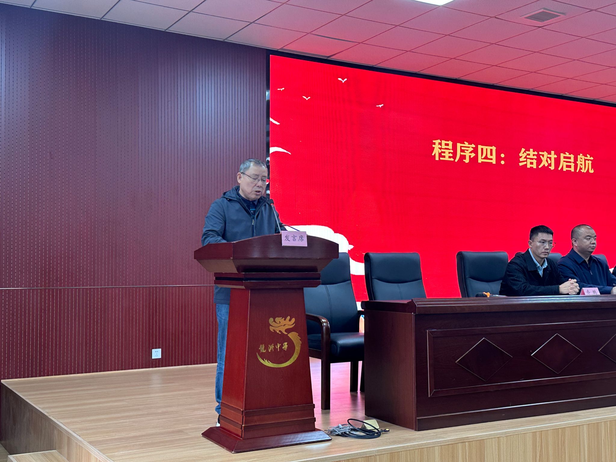 龙洲中学副校长刘宏致辞,对中文系实习师生的到来表示热烈欢迎,强调教育实习是深化两校合作的重要契机。学校为每位实习生配备经验丰富的指导老师,将提供良好的工作与学习环境;希望实习生尽快完成角色转变,勇于实践,关爱学生,及时记录,善于总结。