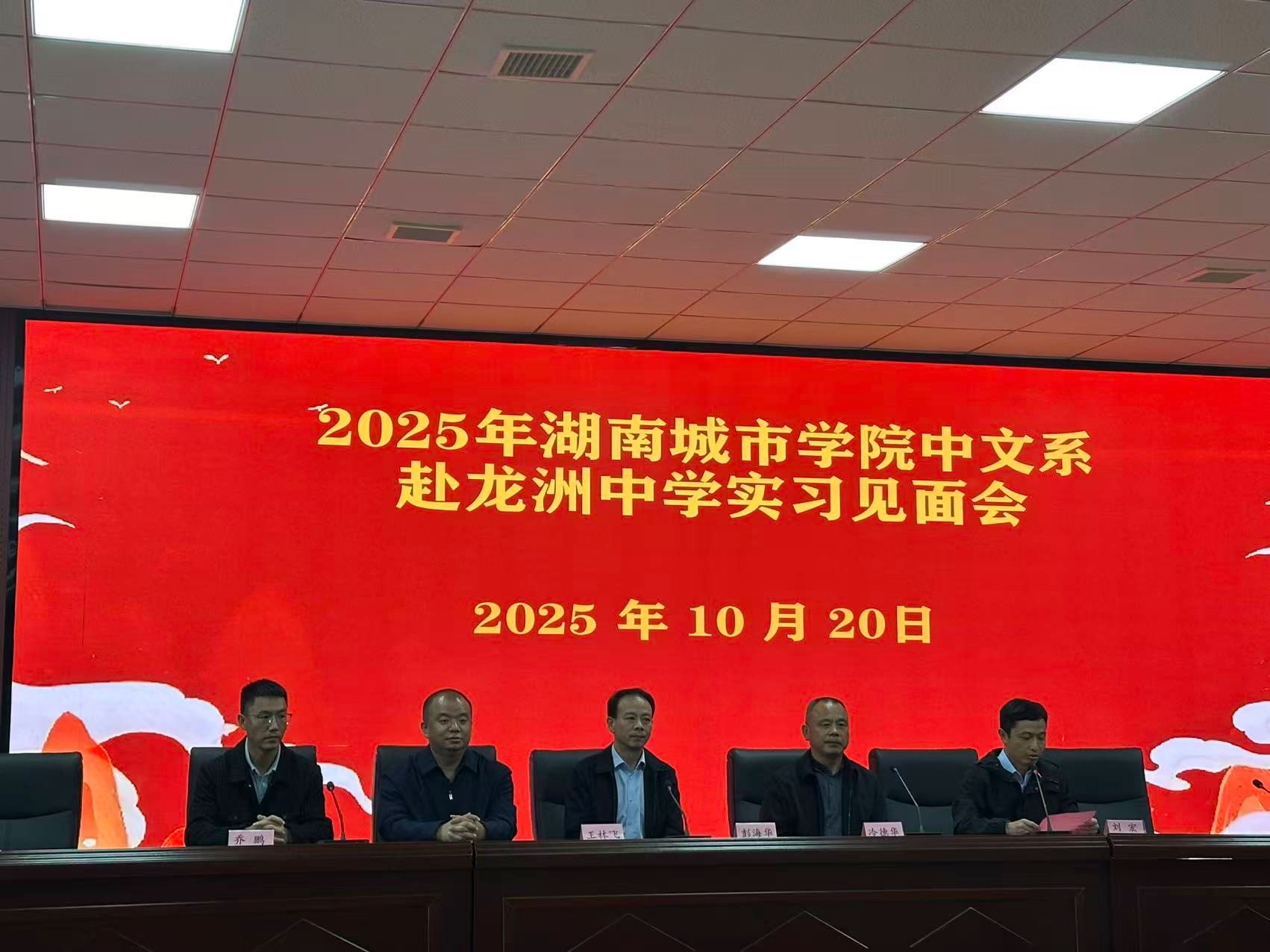 龙吟虎啸一时发,倒海翻江卷巨澜。2025年10月20日上午11时,必赢线路检测3003no1党委书记彭海华率队赴龙洲中学,参加中文系2026届汉语言文学专业集中教育实习见面会。中文系曾娟、何娟、闻滨、乔鹏、王林飞等老师与汉语言文学专业2205502班26名实习生参加活动。