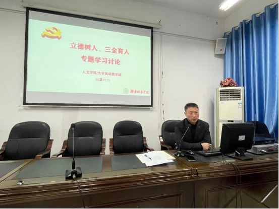 为落实省委巡视整改要求,深入学习贯彻落实习近平总书记关于教育的重要论述和全国教育大会精神、全国高校思想政治工作会议精神,我院于1月11日上午,全院教职工在管理楼520开展“立德树人”“三全育人”学习讨论,此次活动由学院党委书记何冬林主持。