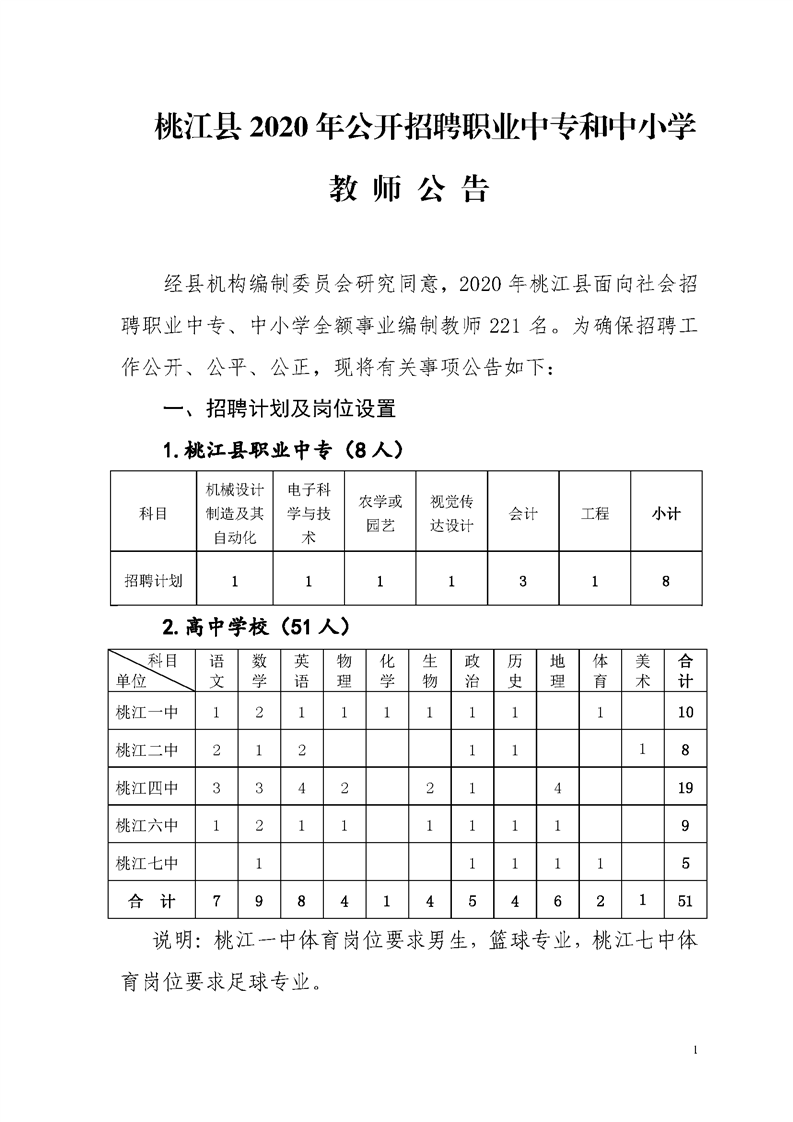 【就业信息】桃江县2020公开招聘职业中专和中小学教师公告