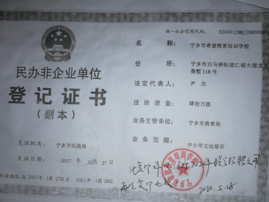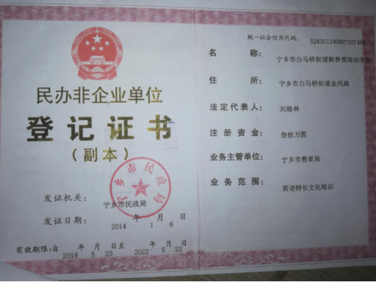 宁乡市白马桥街道新梦想培训学校(有限公司) |