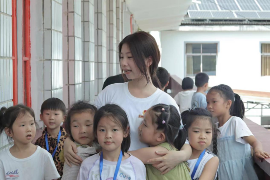 “琪琪老师!我们想你了!”庆阳村村委大楼走廊上,一群孩子围在感光支教团詹子琪的身边。2023年的支教课堂上,詹子琪同这些孩子们打成一片,建立起了深厚的情感联系。支教活动结束后,她仍和村里的孩子们保持着联络,小班王雨荨同学生日时她还寄去了精心准备的生日礼物,“琪琪老师,你还记得我的生日,我真的好感动!”雨荨小朋友收到礼物后便马不停蹄地给詹子琪打来了视频通话,小女孩抱着礼物兴奋地说。对于詹子琪来说,去年那段支教时光好像从未远去,今年再度看到许多熟悉的面孔,依旧是热情活泼,只是有的长得更高了,有的蓄起了长发,有的因为贪吃甜食掉了好几颗牙,再次重逢她不禁感慨道:“听到孩子们叽叽喳喳地说着生活趣事,我心里一下子被幸福填满,为他们传授知识是我的责任,而能够守护他们纯真的心灵,陪伴他们一段路程更是我的幸运。”