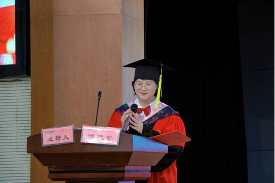 “在文学经典中体味人性光辉,在历史长卷中洞察兴衰规律”,傅建安院长在题为《承人文薪火,赴青云之约》的讲话中,深情回顾了学子们在人文殿堂的成长历程。她将人文教育比作“永不熄灭的薪火”,强调其核心是批判性思考能力、同理心情怀与文化坚守定力。在AI技术快速发展的当下,她特别指出:“越要守护人类独有的情感温度与创造性思维,这是人文精神不可替代的价值。”现场师生共同回味了学子们在图书馆研读经典、在志愿服务中传递温暖的青春印记。院长特别强调,人文素养赋予毕业生四大“利器”:穿透迷雾的思想力量、跨文化沟通的智慧、理解人性的情感深度,以及立足传统的文化自信。这些娓娓道来的话语和嘱托成为毕业典礼上最触动人心的精神共鸣。